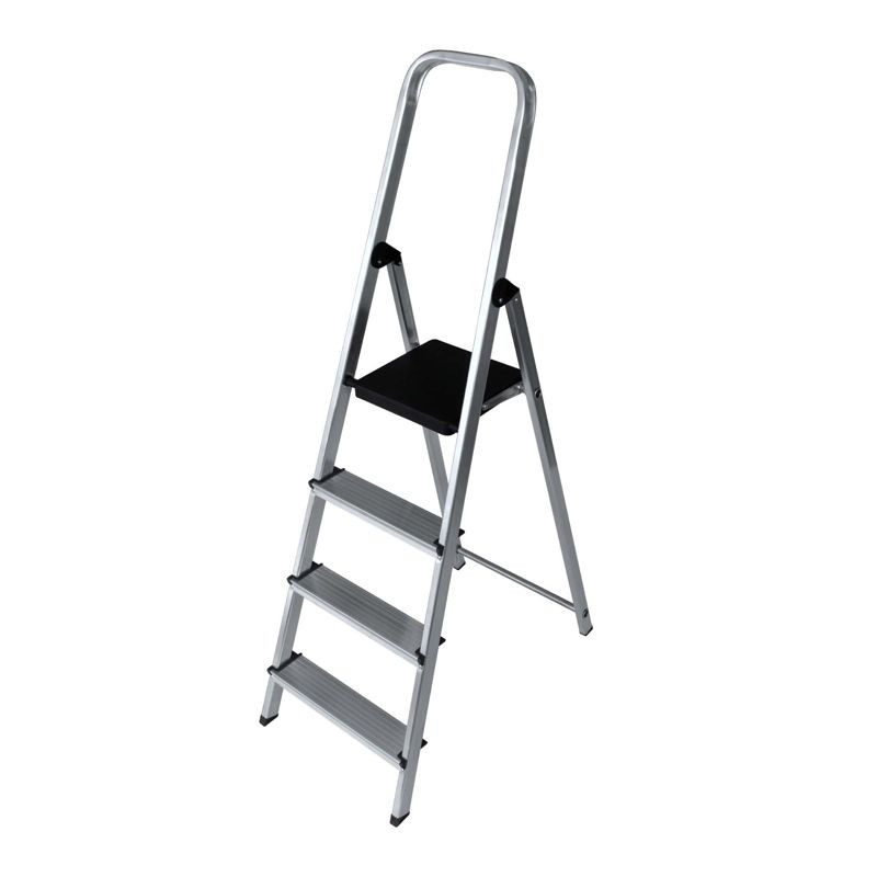 Escalera de aluminio de 4 peldaños de gran ligereza y resistencia indicada para uso doméstico en el hogar.